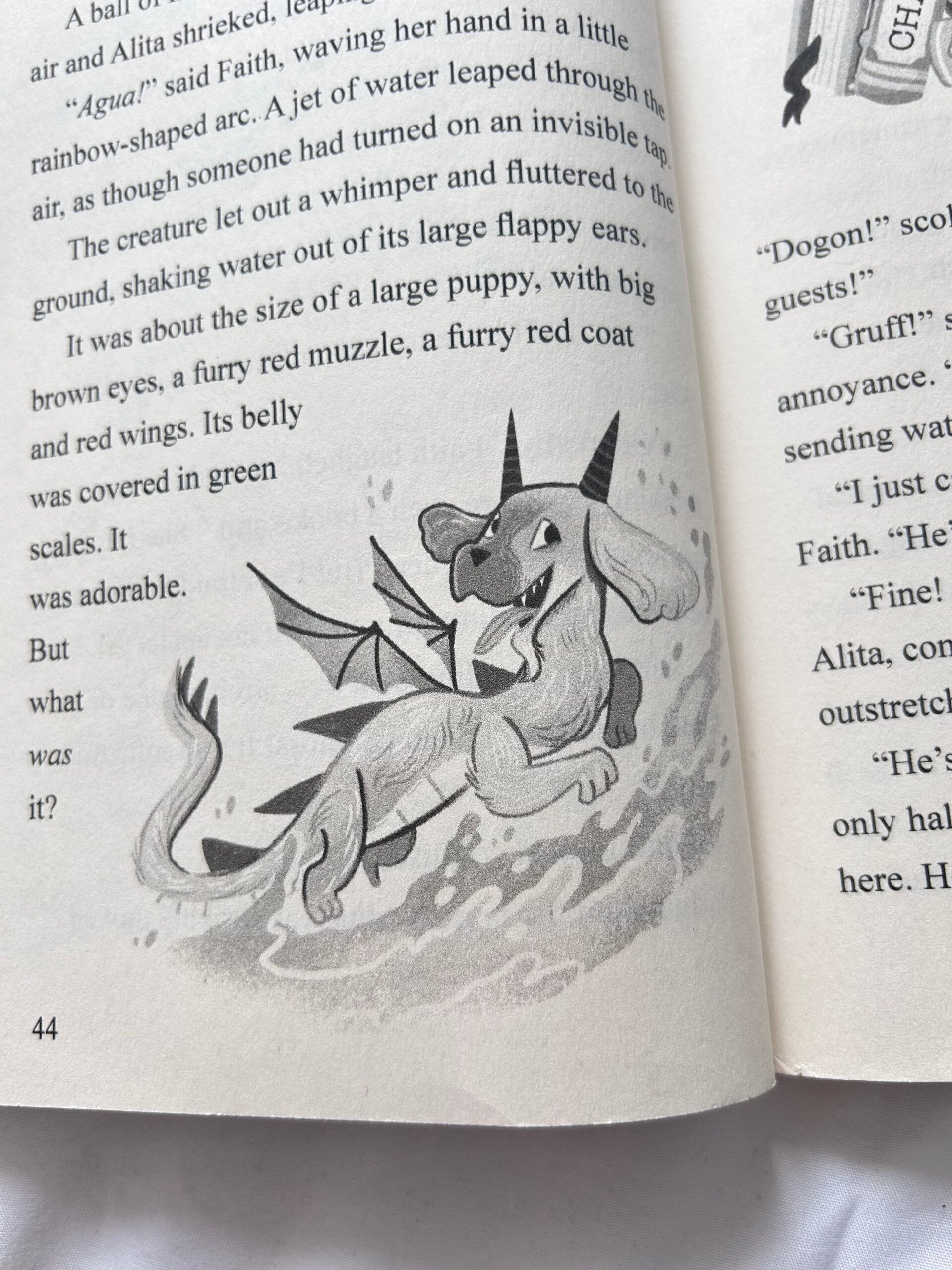 The characters are a dynamic trio: two bookworms and one who can’t stand reading, offering a relatable mix for all types of readers. My favourite character is (of course) Doggon, the half-dog, half-dragon creature who adds humor and heart to the adventure.